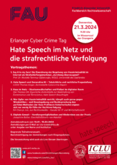 Es heißt nun zum achten Mal: Anmelden zum Erlanger Cybercrime Tag! Am Donnerstag, den 21.03.2024, laden wir Sie ab 9:30 Uhr herzlich in den Wassersaal der Orangerie in Erlangen ein. Nach der erfolgreichen Tagung im vergangenen Jahr zu „Open Source in der Strafverfolgung“, widmet sich der diesjährige ECCT dem Thema „Hate Speech im Netz und die strafrechtliche Verfolgung“.