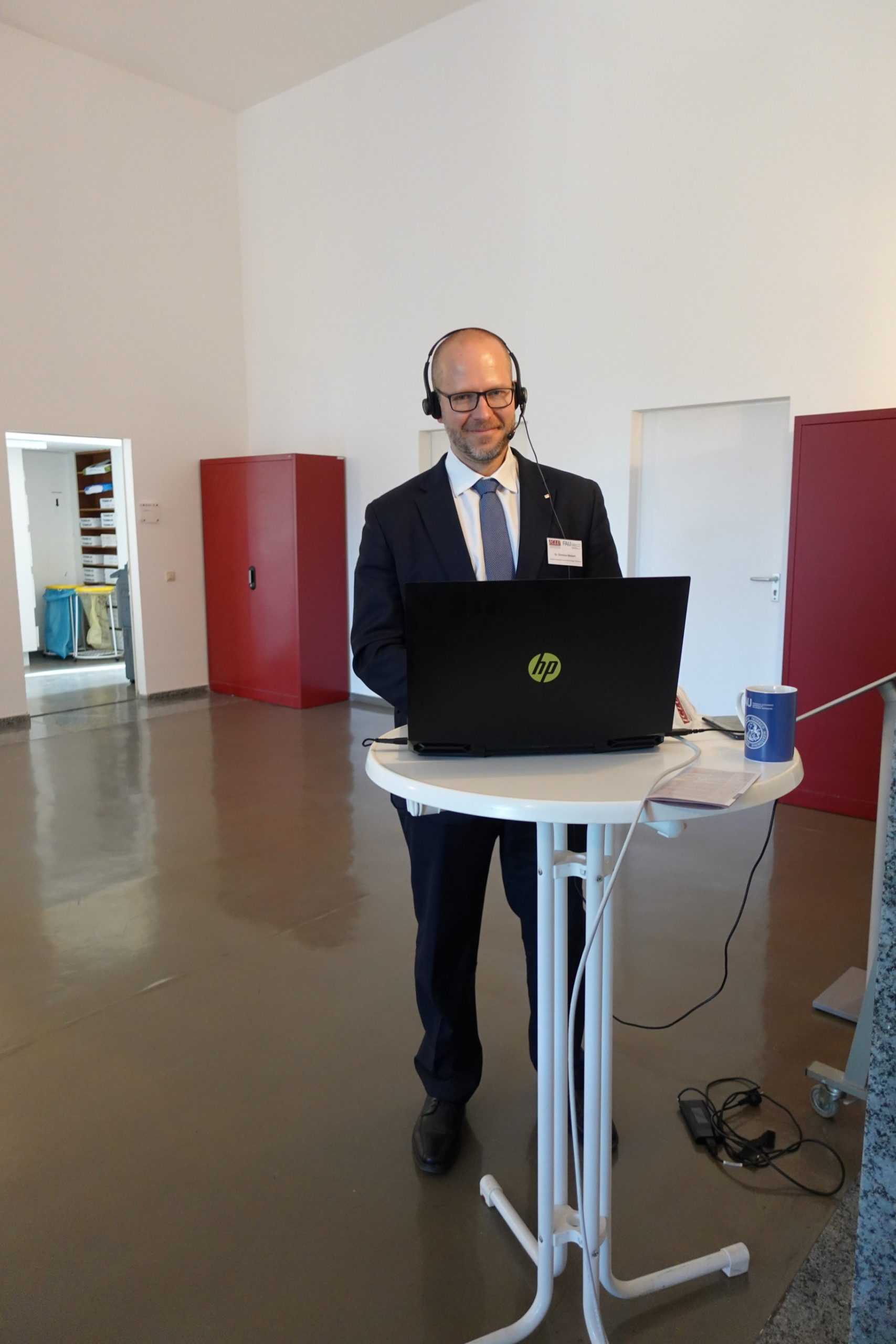 Den ersten Vortag „Herausforderungen und Chancen einer europäischen KI-Regulierung“ hielt Thilo Klawonn, Referent des Bundesministerium der Justiz, der für die Bundesregierung den Vorschlag einer KI-Verordnung federführend betreut. Der Referent stellte den aktuellen Stand der Verhandlungen mit Fokus auf die für die anwesenden Professionen relevanten Themen vor, erläuterte Grundlagen und Ziele der Verordnung und gab einen Einblick in die Positionen der Bundesregierung.