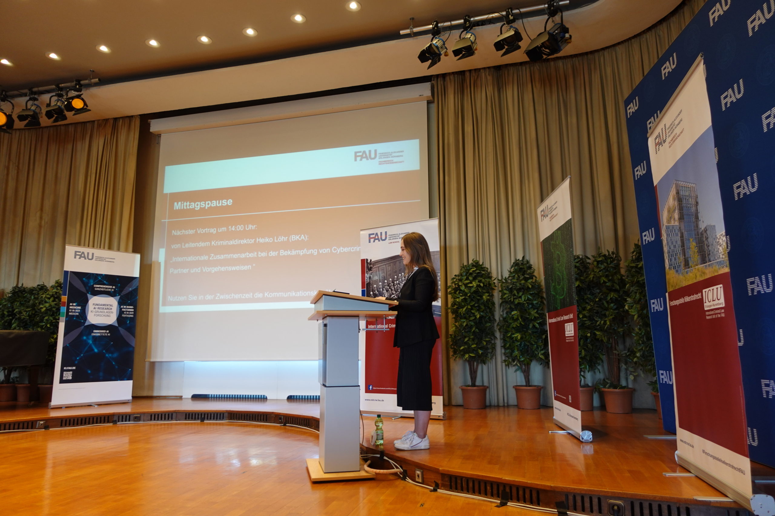 11/11Nachdem der Erlanger Cybercrime Tag (ECCT) 2020 und 2021 coronabedingt online ausgerichtet werden mussten, fand der diesjährige ECCT zum Thema „KI in der Strafverfolgung“ am 15.09. erstmals als hybride Veranstaltung statt. So war es den Teilnehmer:innen möglich, sowohl in Präsenz als auch online die Vorträge zu verfolgen. Dieses Angebot wurde mit rund 70 Teilnehmenden vor Ort in der Schlossaula in Erlanger sowie rund 60 Teilnehmenden online gut angenommen, womit der ECCT 2022 der bisher größte war.