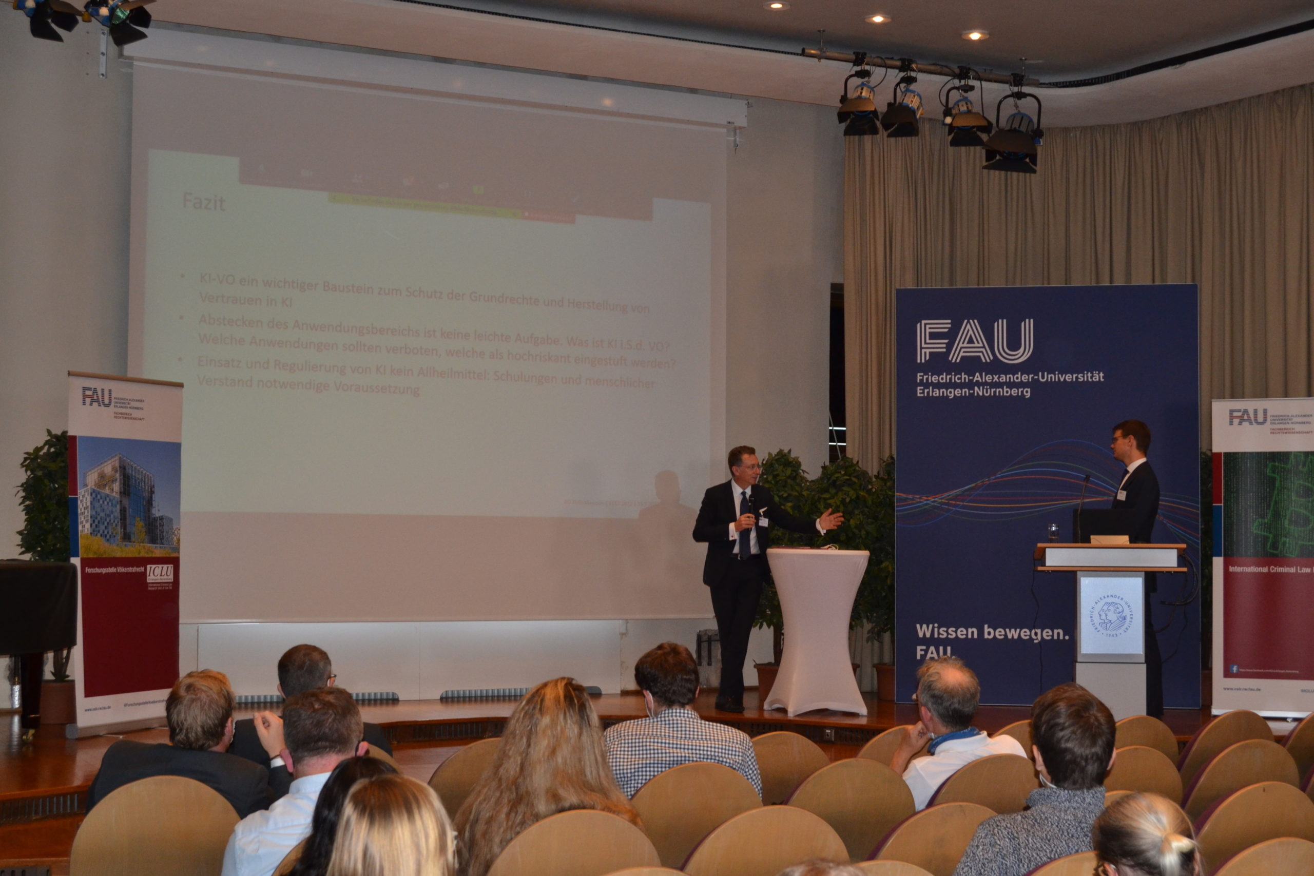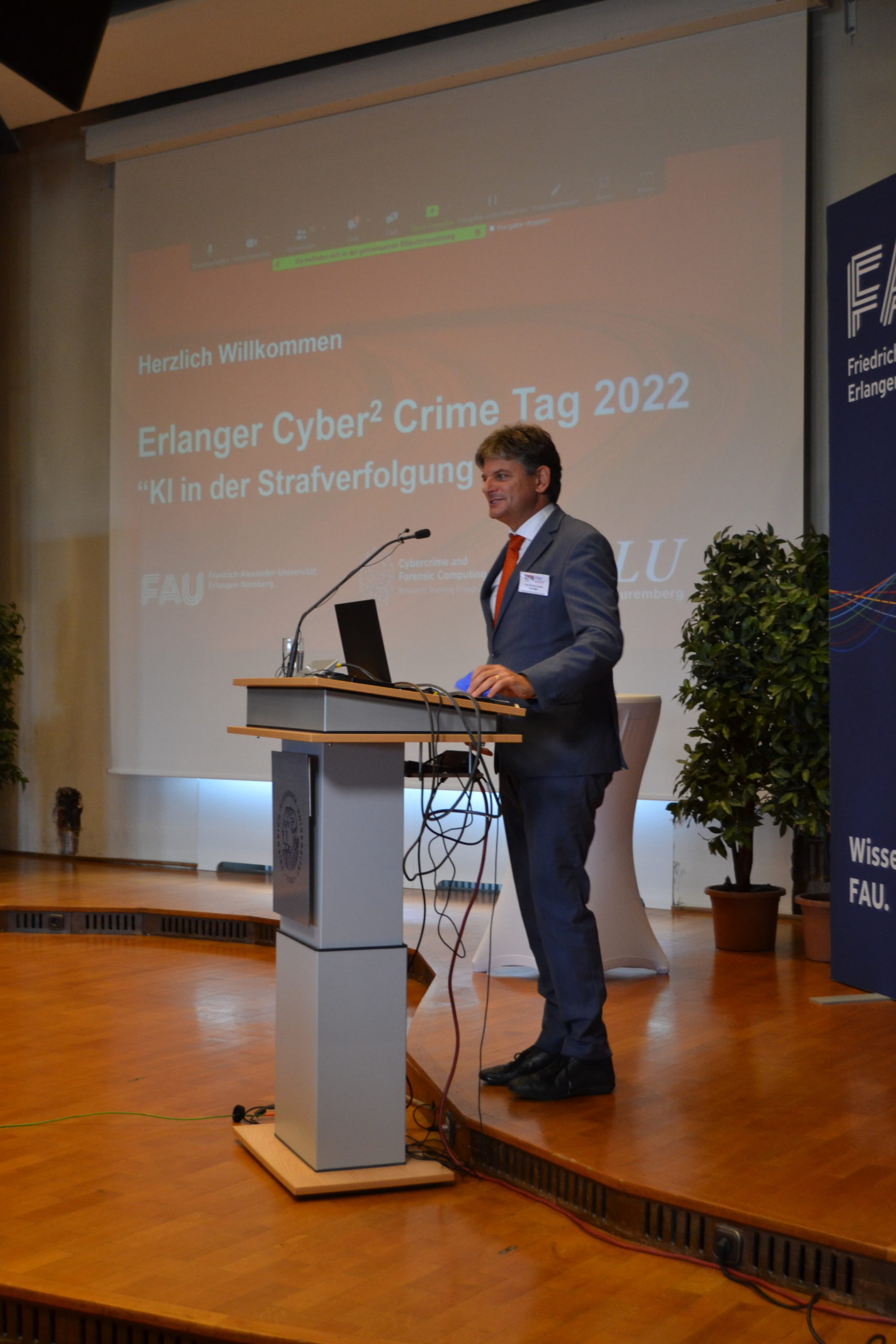 Nach einer Begrüßung durch Prof. Dr. Christoph Safferling, dem alljährlichen Veranstalter des ECCT, hieß der Präsidenten der Friedrich-Alexander-Universität Erlangen-Nürnberg, Prof. Dr. Joachim Hornegger die Referenten sowie Teilnehmenden herzlich willkommen. Anschließend leitete Prof. Safferling zum Thema „KI in der Strafverfolgung“ ein.