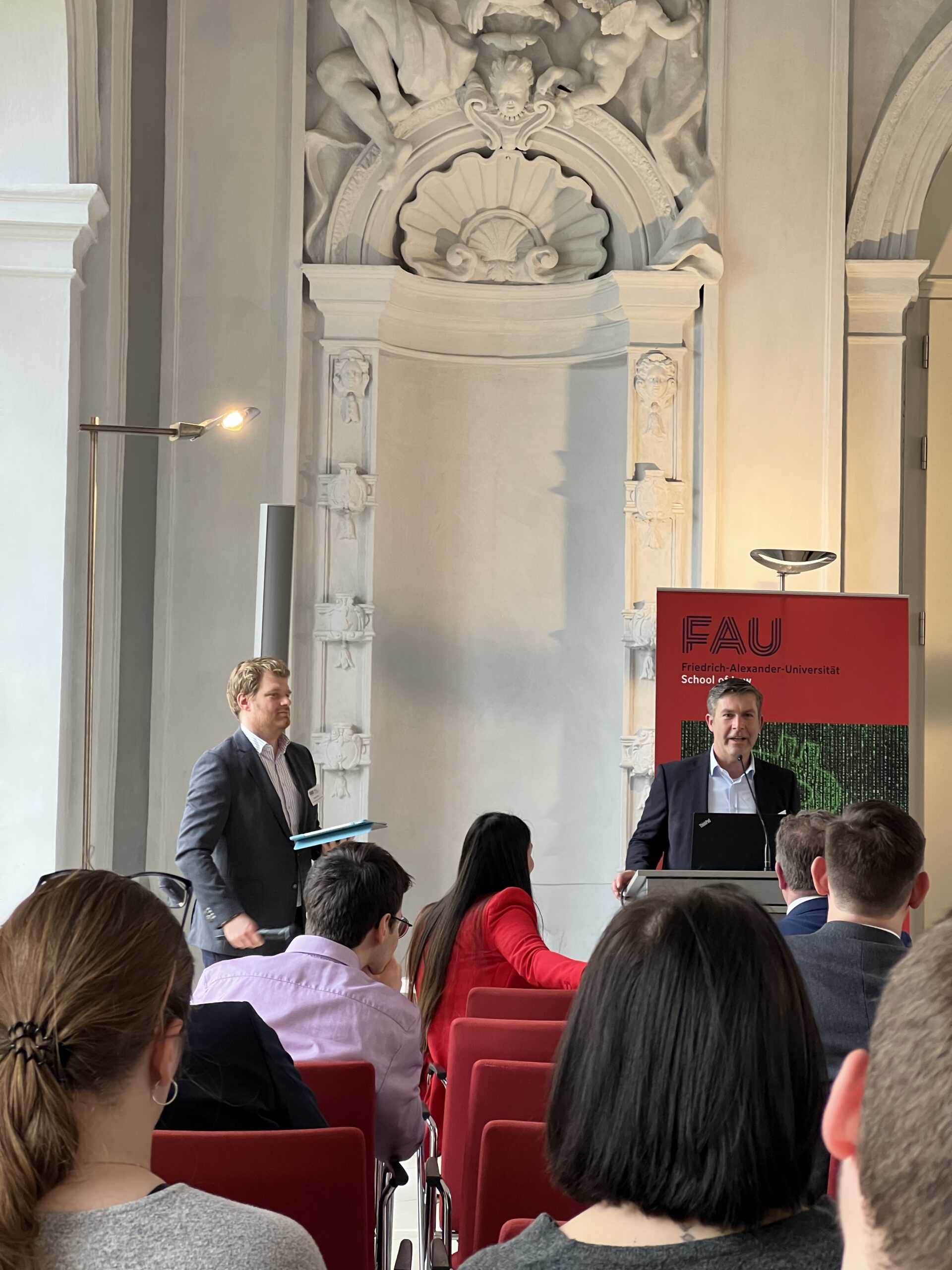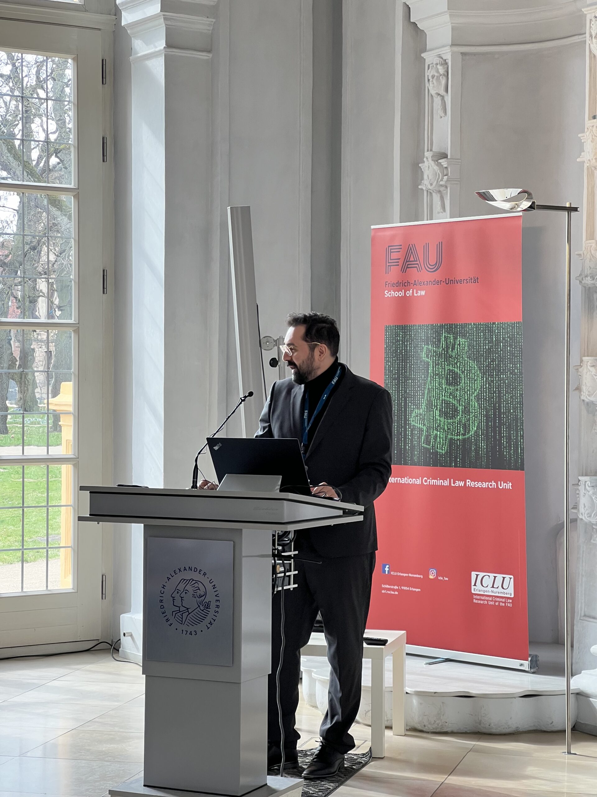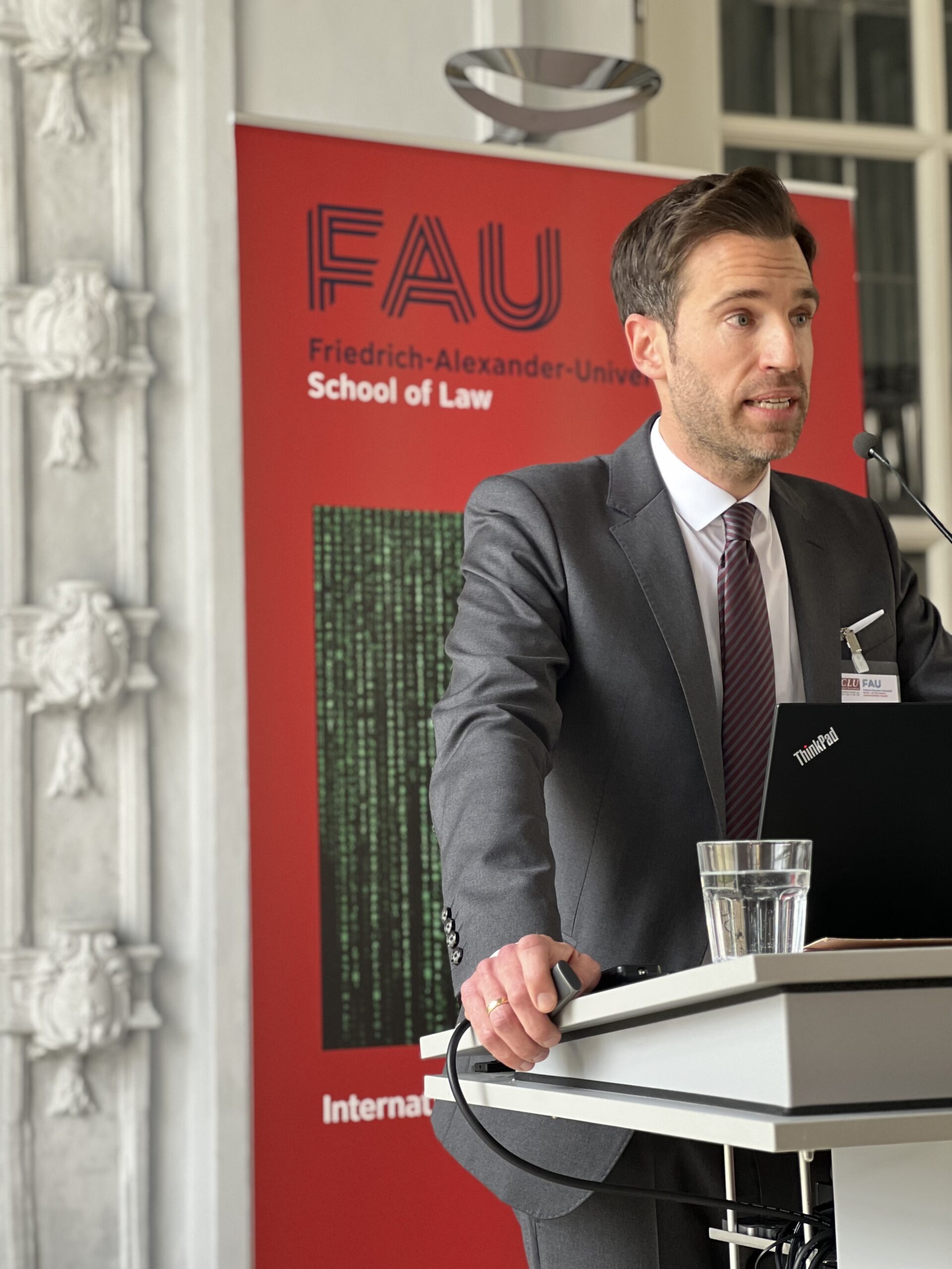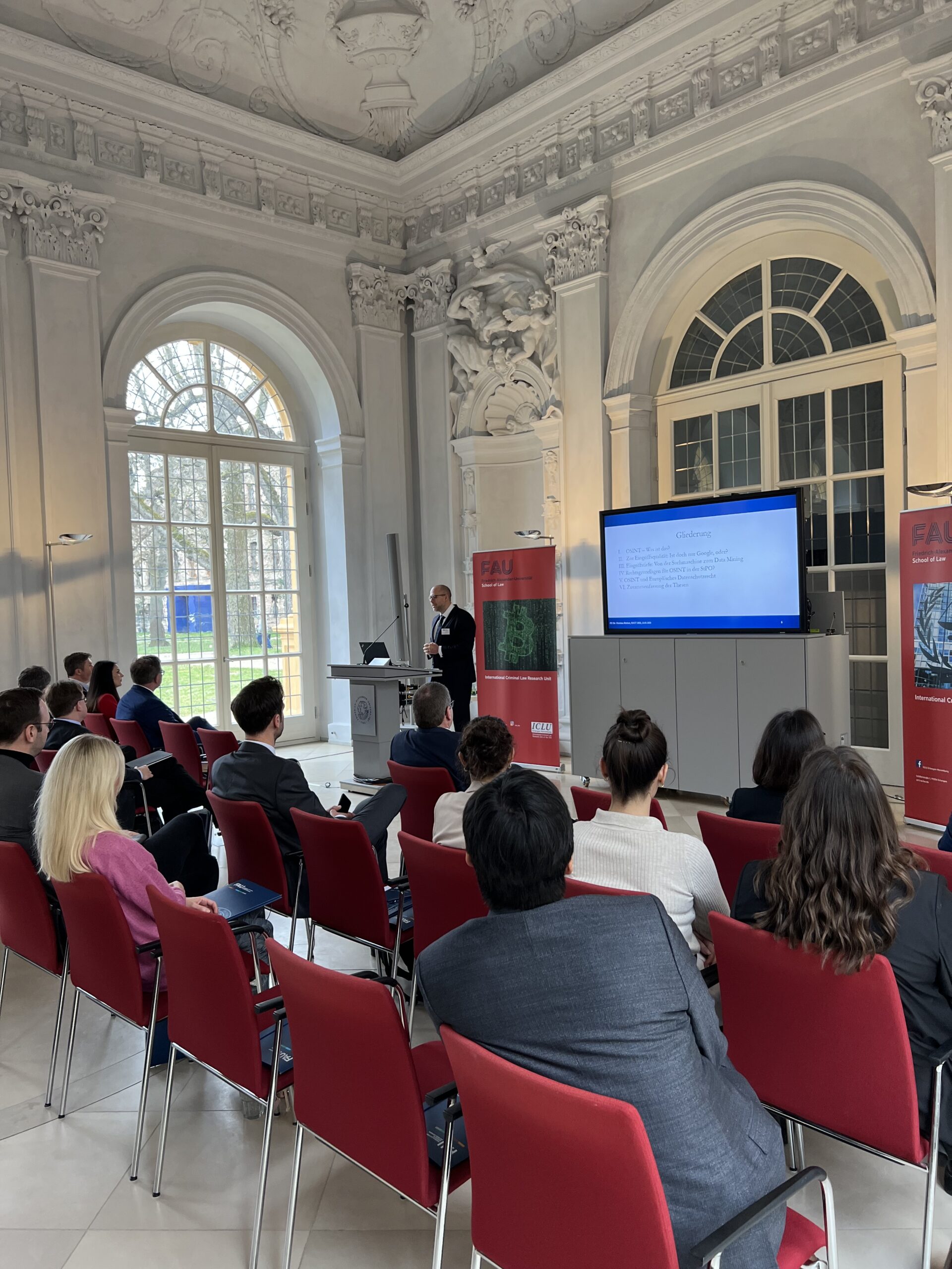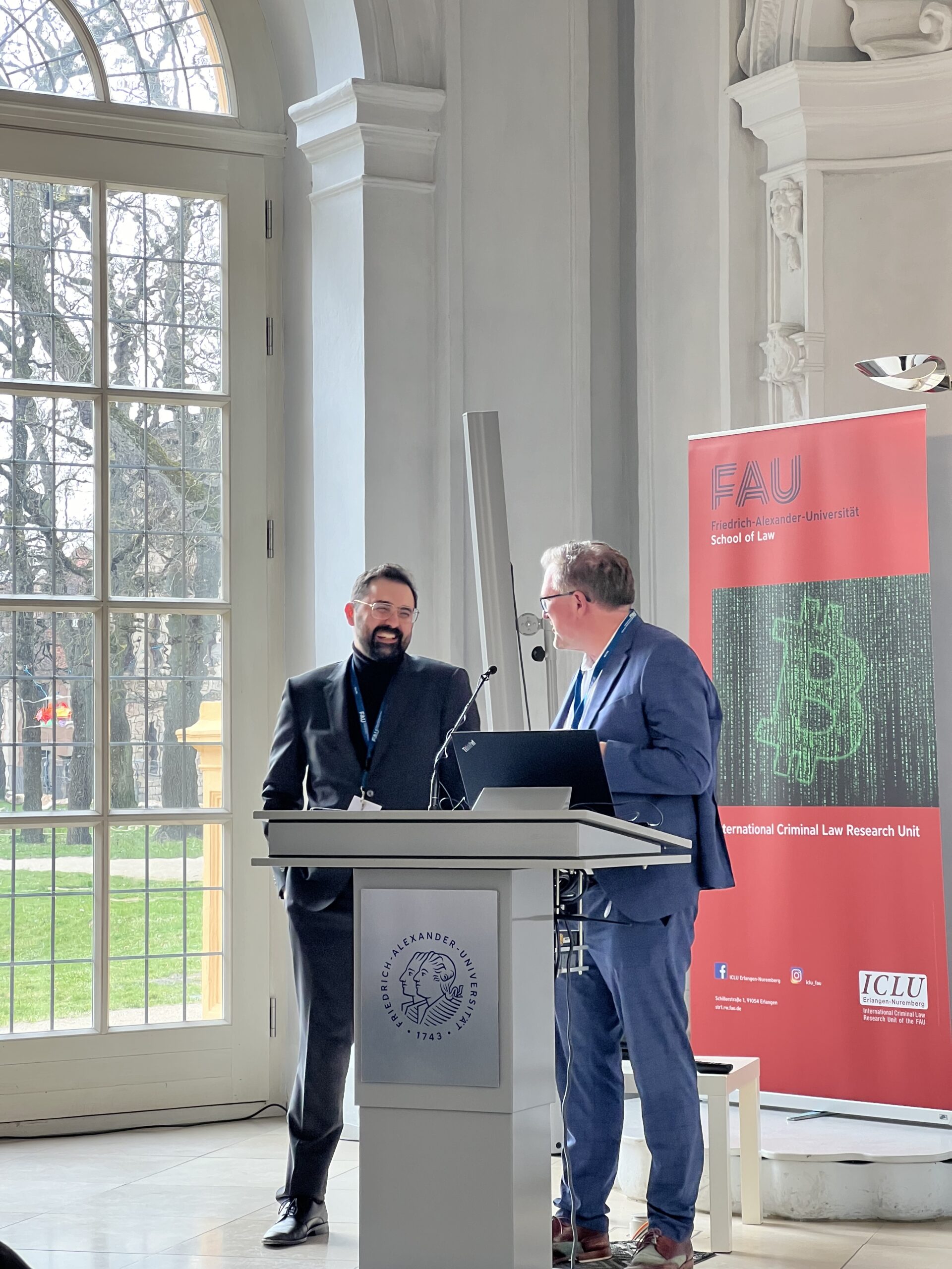 Dieses Mal erfolgte die Begrüßung der Referent:innen und Teilnehmer:innen durch den Präsidenten der Friedrich-Alexander-Universität Erlangen-Nürnberg, Professor Dr. Joachim Hornegger und Professor Dr. Kudlich, Inhaber des Lehrstuhls für Strafrecht, Strafprozessrecht und Rechtsphilosophie und Sprecher des Graduiertenkollegs „Cybercrime und Forensische Informatik“ an der FAU. Letzterer übergab das Wort – auch nach der ein oder anderen persönlichen Anekdote – an den ersten Referenten, Professor Dr. Christian Rückert, Lehrstuhlinhaber an der Universität Bayreuth. Der ehemalige FAU-Habilitand, der die Veranstaltung selbst jahrelang organisierte und mitgestaltete, führte quasi als Heimspiel die Teilnehmer:innen und Interessierten in die Thematik ein und hielt den ersten Vortrag. Als Einstieg ging er auf die These „Was jede Privatperson darf, muss die Strafverfolgungsbehörde erst Recht dürfen“ ein, und erörterte anhand der Ermittlung einer angemessenen Rechtsgrundlage, wieso dieser Gedanke problematisch ist. Der Vortrag spielte sich jedoch nicht nur in der Strafprozessordnung ab, sondern wurde durch Ausblicke ins Verfassungsrecht, Datenschutzrecht und Europäische Strafrecht abgerundet.