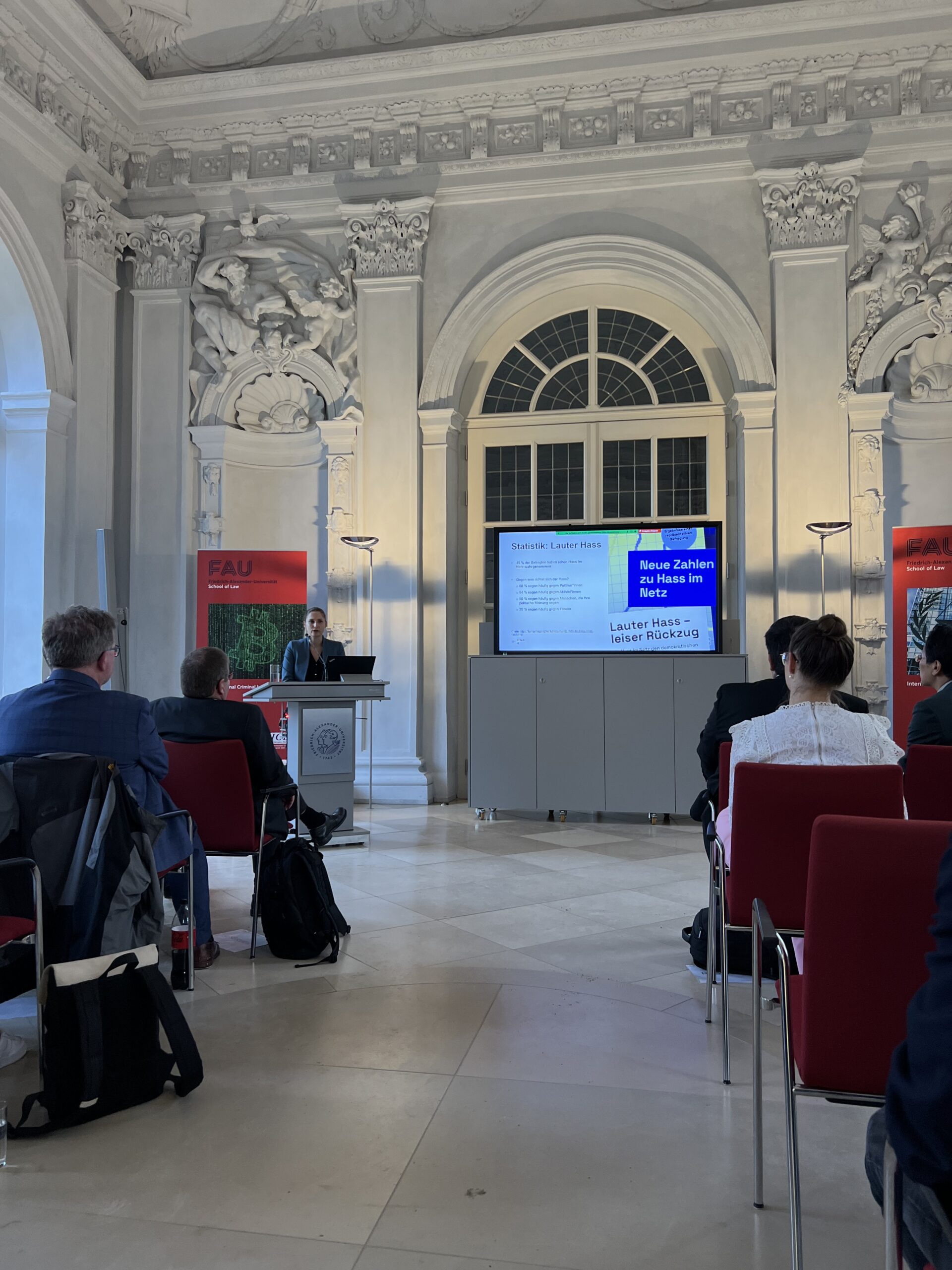 9/9Natürlich vergeht kein Jahr ohne den Erlanger Cybercrime Tag! Dieses Jahr hieß es schon zum achten Mal „Türen des Wassersaals auf und interessierte Teilnehmerinnen und Teilnehmer aus Wissenschaft und Praxis herein.“ Zum Thema „Hate Speech im Netz und die strafrechtliche Verfolgung“ war der Wassersaal am 21.03.2024 mit rund 100 Teilnehmerinnen und Teilnehmern vor Ort und auch vielen Onlinezuhörern voll. Es ist erfreulich, dass die von der Alfred-Vinzl-Stiftung geförderte Tagung auch in diesem Jahr wieder einen interdisziplinären Austausch zwischen Ministerien, Justizangestellten, Rechtsanwälten, Wissenschaftlern, ITlern, Rechtsreferendaren und vielen mehr fördern und ermöglichen konnte. Das Phänomen Hate Speech stellt eine negative Kommunikationsentwicklung im Internet dar. Dabei bedeutet der Begriff eine heftige Abneigung oder ein starkes Gefühl der Ablehnung und Feindschaft gegenüber einer Person oder Gruppe. Neben der Gefährdung demokratischer Grundgedanken betrifft Hate Speech sowohl das materielle als auch das prozessuale Strafrecht. Durch die regen Diskussionen und interessanten Vorträge der Referenten konnten Themen wie die Verantwortung und die Rolle der Plattformbetreiber, der Schutzbereich der Meinungsfreiheit, Art. 5 I GG, die Herausforderungen der Strafverfolgung und die Möglichkeiten einer Automatisierung gewisser Vorgänge, sowie die erhebliche Belastung für Opfer und diesbezügliche Lösungsansätze erörtert werden.