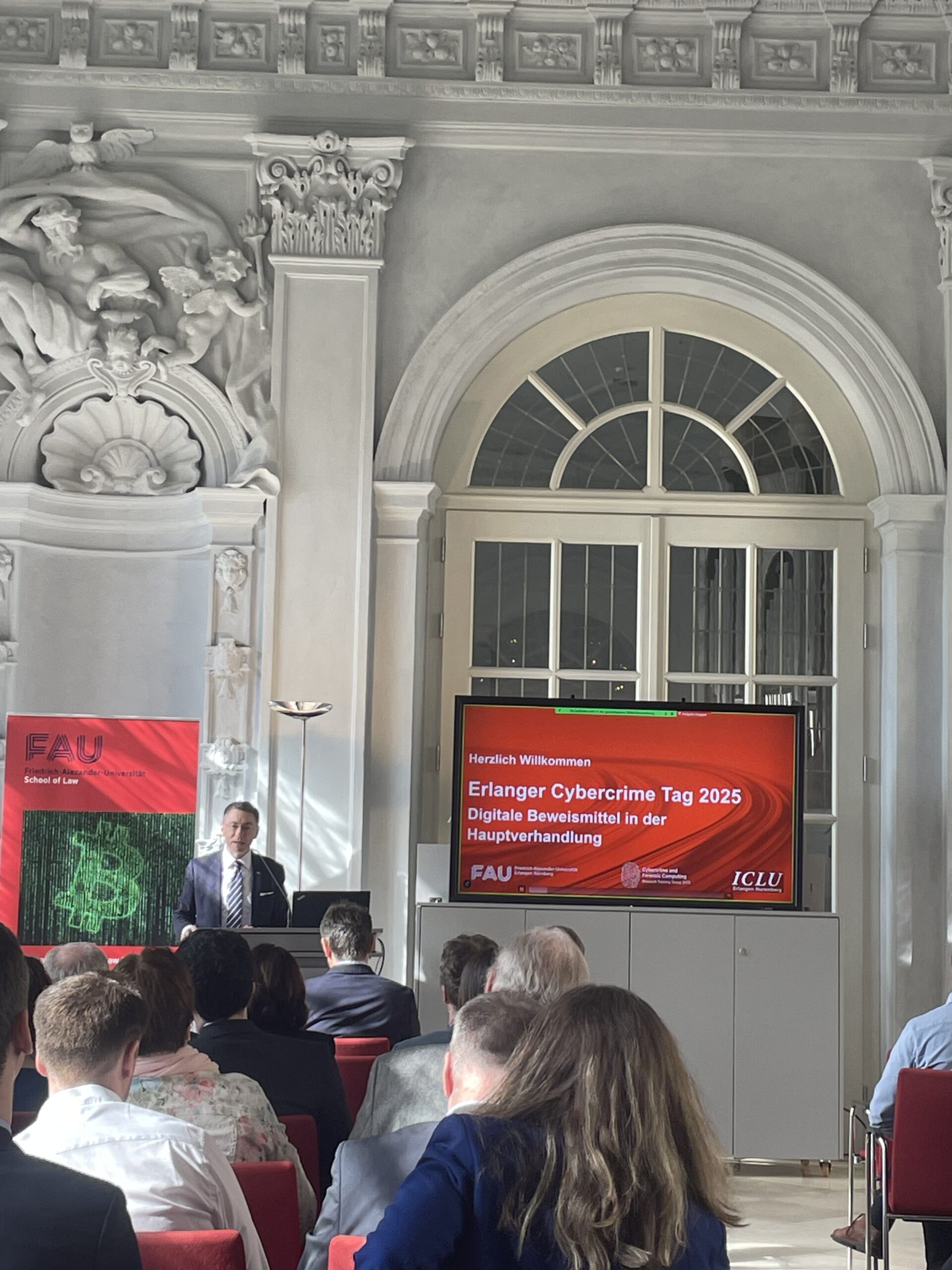 Auch in diesem Jahr verwandelte sich der Wassersaal der Orangerie wieder zu einem besonderen Treffpunkt und Austauschort für Interessierte der Cyberkriminalität und forensischen Informatik. Der Erlanger Cybercrime Tag hat sich bei vielen Teilnehmer:innen zu einem festen Termin im Kalender etabliert – und es freut uns sehr, dass diese Diskussionsplattform so dankend angenommen wird. Bereits zum neunten Mal brachte der ECCT rund 160 Teilnehmer:innen vor Ort und virtuell zusammen, um sich am 20.03.2025 intensiv zum Thema „Digitale Beweismittel in der Hauptverhandlung“ auszutauschen, fachlich zu analysieren, angeregt zu debattieren und nicht zuletzt überraschend oft gemeinsam herzlich zu lachen. Einmal mehr wurde deutlich, dass der Erlanger Cybercrime Tag längst über die Grenzen Erlangens und Bayerns hinausstrahlt, sodass wir mittlerweile internationale Gäste begrüßen dürfen. Das Thema „Digitale Beweismittel in der Hauptverhandlung“ wirft Fragen auf, die nicht nur juristische Relevanz besitzen, sondern auch interdisziplinäre Schnittstellen zur Informatik, Praxis und Wissenschaft berühren. In zahlreichen Strafverfahren werden mittlerweile digitale Inhalte wie Chatverläufe von Messengerdiensten oder auch Bild- und Videomaterial von Social Media Plattformen eingeführt. Digitale Beweismittel sind jedoch mit einer Reihe komplexer rechtlicher und praktischer Probleme verbunden. Dabei spielt neben Fragen zur Authentizität und Integrität, der IT-Forensiker eine zentrale, aber teilweise auch ungeklärte Rolle. Gleichzeitig gilt es, die Verfahrensrechte des Angeklagten in vollem Umfang zu wahren und rechtsstaatliche Standards auch im digitalen Zeitalter sicherzustellen.